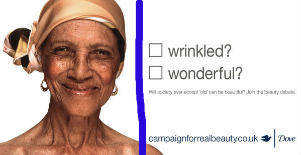 The design is center aligned. The yellow is a strong contrast from the sepia background. It is also the same yellow used on Advil bottles. The proximity of the typeface with the woman is to bring the eye to the elbow and what she is doing.
